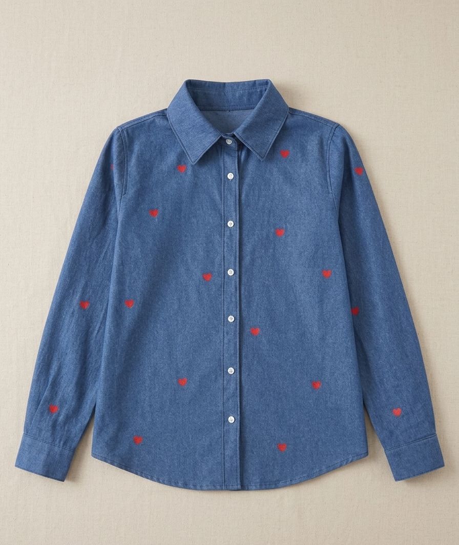 - ❤️ Corazones estampados en rojo, tierna combinación con el denim.