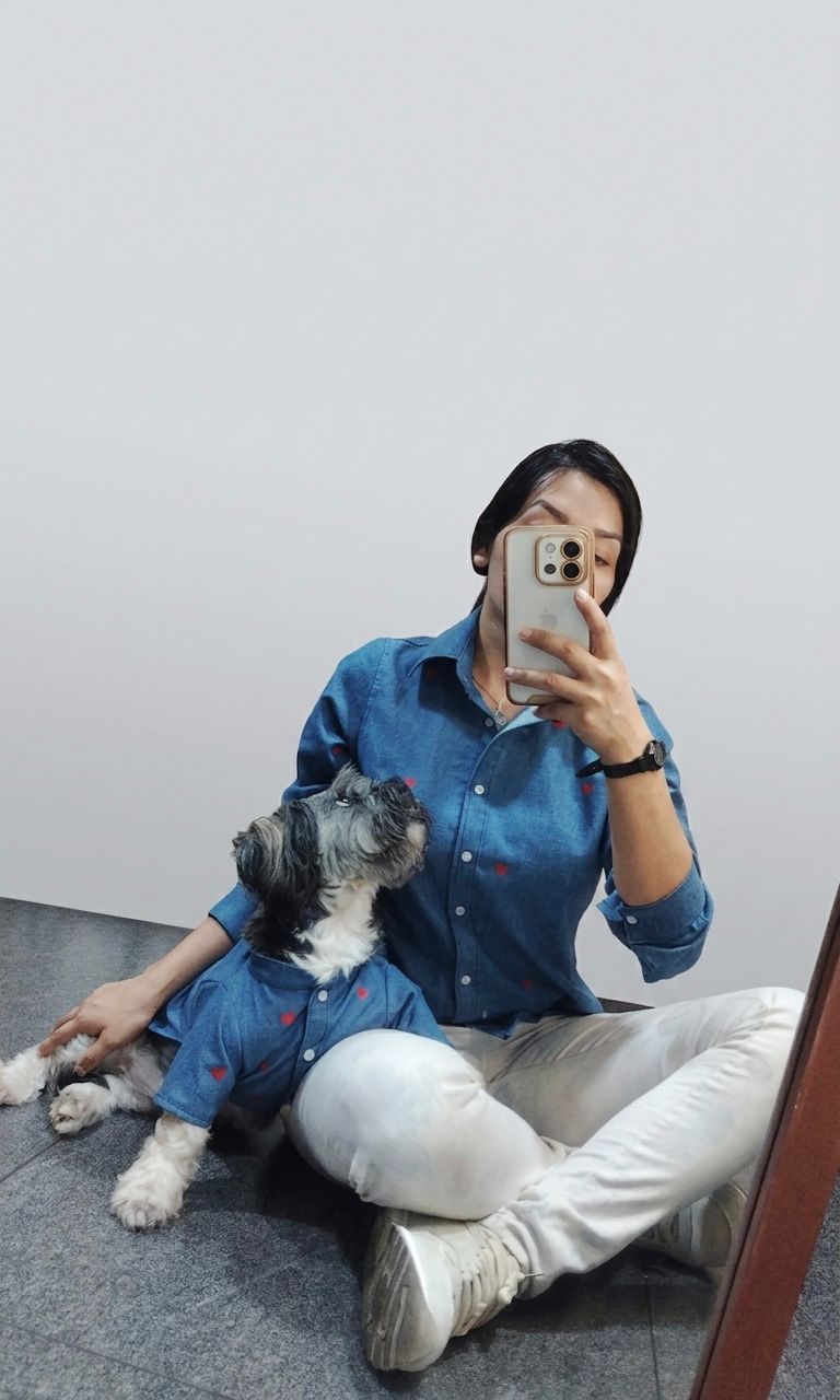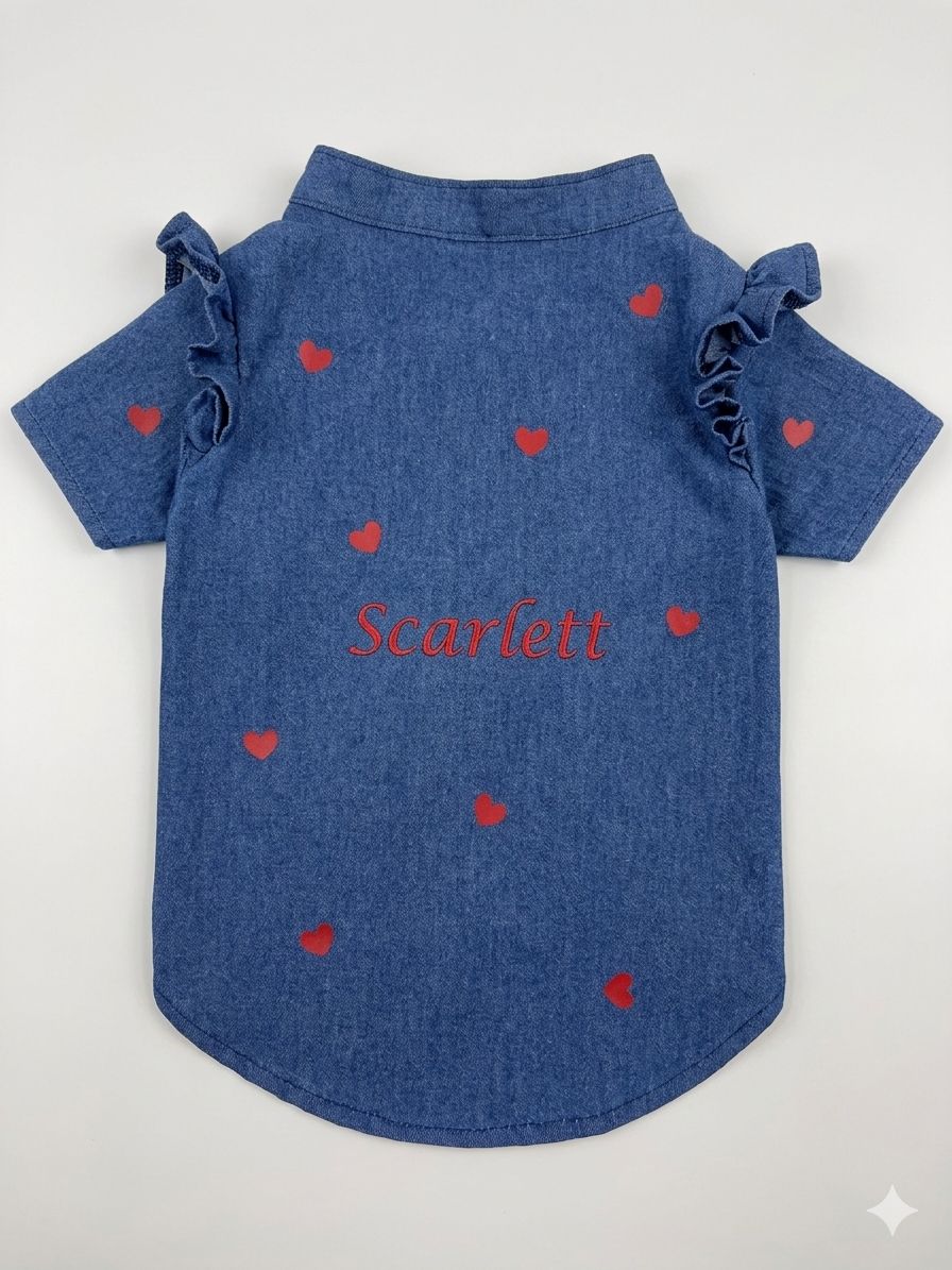 Porque el amor de mamá no entiende de razas, especies ni tamaños. Un set denim con corazones estampados en rojo, para que mamá y su bebé peludo celebren juntos el día más tierno del año. 💙❤️
