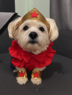 Elaborado en popelina de algodon con faldita en tela satinada ,vincha y puñeras en tela latex detalles de estampado en vinil textil